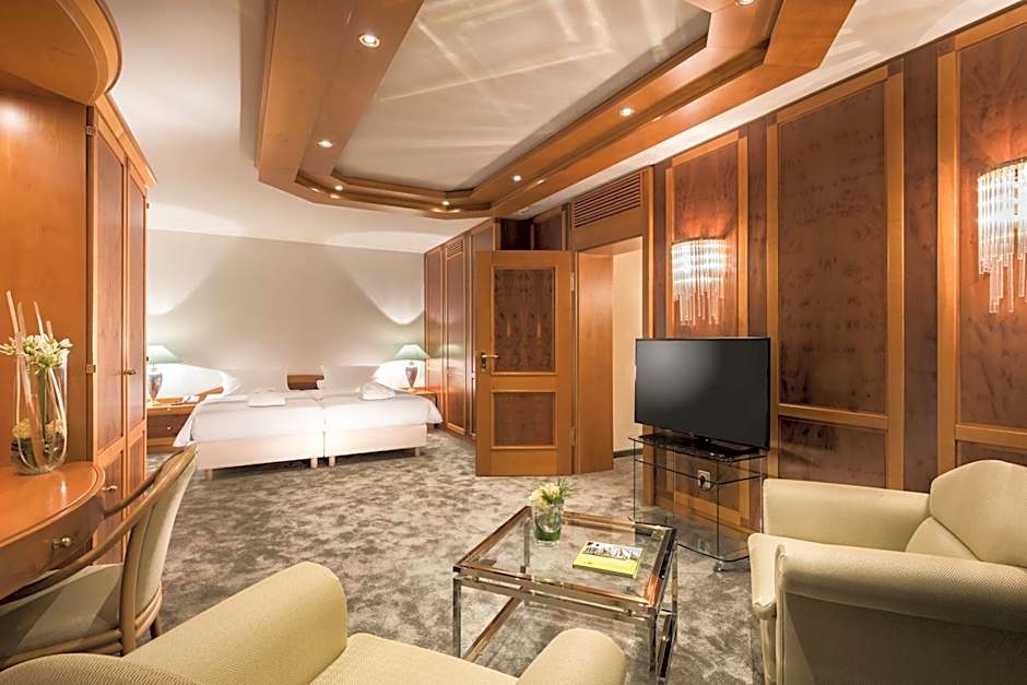 Double bed with comfortable pillows, spacious and bright work area, flat screen TV, telephone, internet via cable and WLAN, mini-bar, room safe the size of a laptop, coffee and tea making facilities, bathrobe and slippers for hire, bathroom with shower and bath and air conditioning. Capsule machine for coffee and tea.